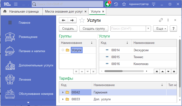 Настройка мест оказания услуг