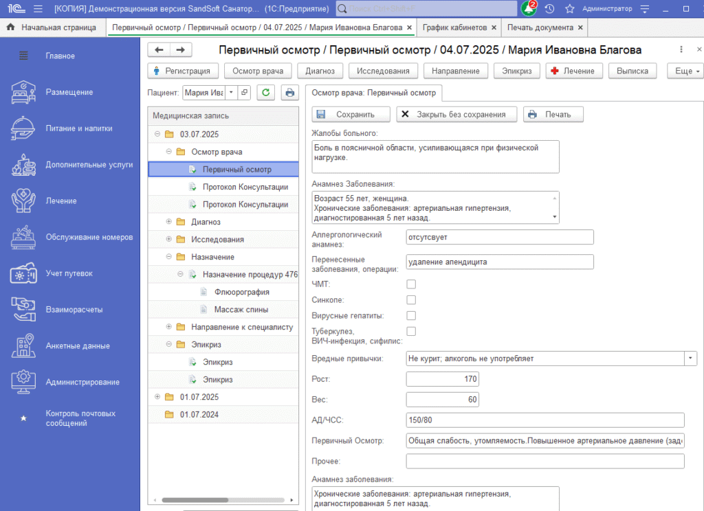 Благодаря гибкой настройке, программу легко адаптировать под любые задачи санатория.