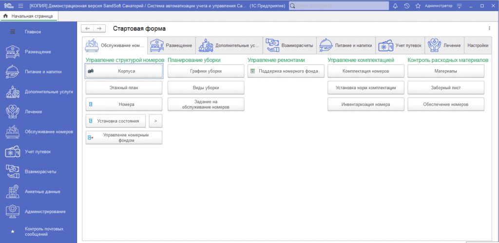 Каждая из программ для санаториев включает набор ключевых модулей. Они охватывают все аспекты управления учреждением.